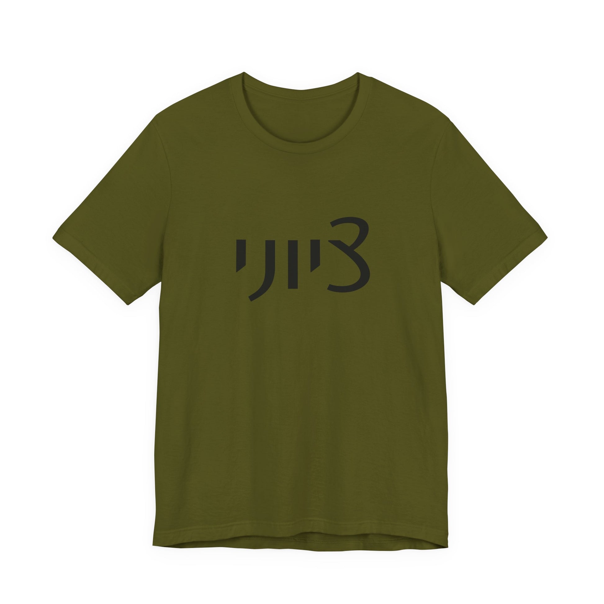 Our ZIONIST in HEBREW is shown here in the Black Masculine 1M Spelling version - the female is also available. Graphic is featured on the FRONT of our Bella Canvas Unisex Tee.